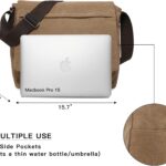 - SIZE:15.7″W x 13.8″H x 5.1″D,comfortably fit a 15″ laptop, shoulder strap:46″, adjustable. The canvas messenger bag is lightweight, compact, vintage, easy to care for, and functional.