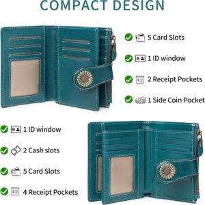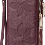 - 【Genuine Leather Wallet】Soft and glossy leather, elegant and luxurious women’s wallet with flower pattern. Large capacity wallets for women, SIZE: 7.87 x 4.13 x 1.77inch