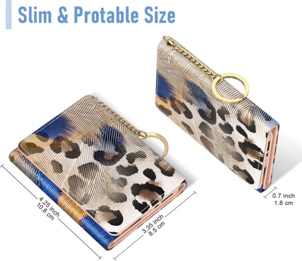 - 【Slim & Protable Size】This slim wallet for women measures 4.25 x 3.35 x 0.7 inch, only 1.8 oz weight, slim, lightweight and does not take space, fits perfectly in your pocket and purse. Comes with extra key chain for easy carry when shopping or traveling.